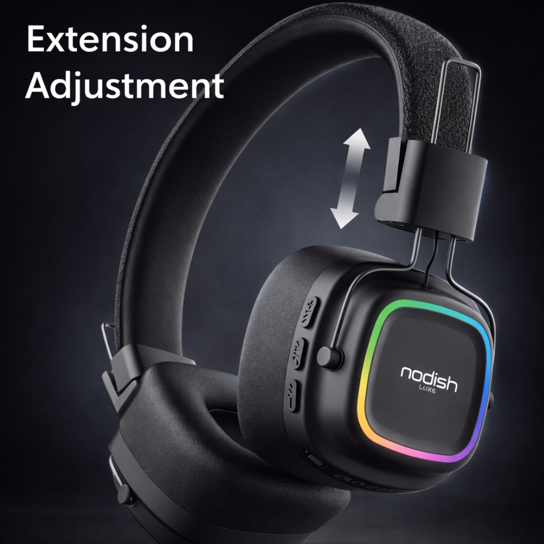 The Modishombre BEATRON Wireless Headphones (HD0002) are designed for reliable everyday performance with a focus on comfort and sound clarity. These over-ear wireless headphones use Bluetooth v6.0 for stable connectivity with a transmission range of up to 10 meters, making them compatible with smartphones, tablets, laptops, and other Bluetooth-enabled devices. Powered by a 250mAh rechargeable battery, BEATRON offers up to 10 hours of playback time and an extended 120 hours of standby time, ensuring dependable usage throughout the day. The headphones feature HD Texture Volume and Surround Sound for a rich and immersive audio experience, along with a built-in microphone that delivers highly clear voice calls. Designed for long listening sessions, BEATRON includes a comfortable over-ear fit with soft cushioning, a lightweight build, and easy on-ear controls. With a modern design enhanced by coloured light accents, the Modish Ombre BEATRON Wireless Headphones combine style, comfort, and practical performance for music, calls, work-from-home, travel, and daily entertainment.